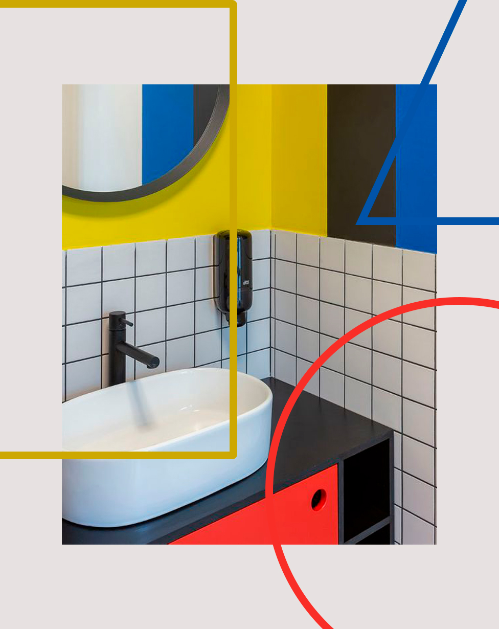 - Emplea colores primarios para pequeños objetos de decoración, aunque si quieres crear un ambiente 100% bauhaus puedes pintar las paredes por bloques de color.
