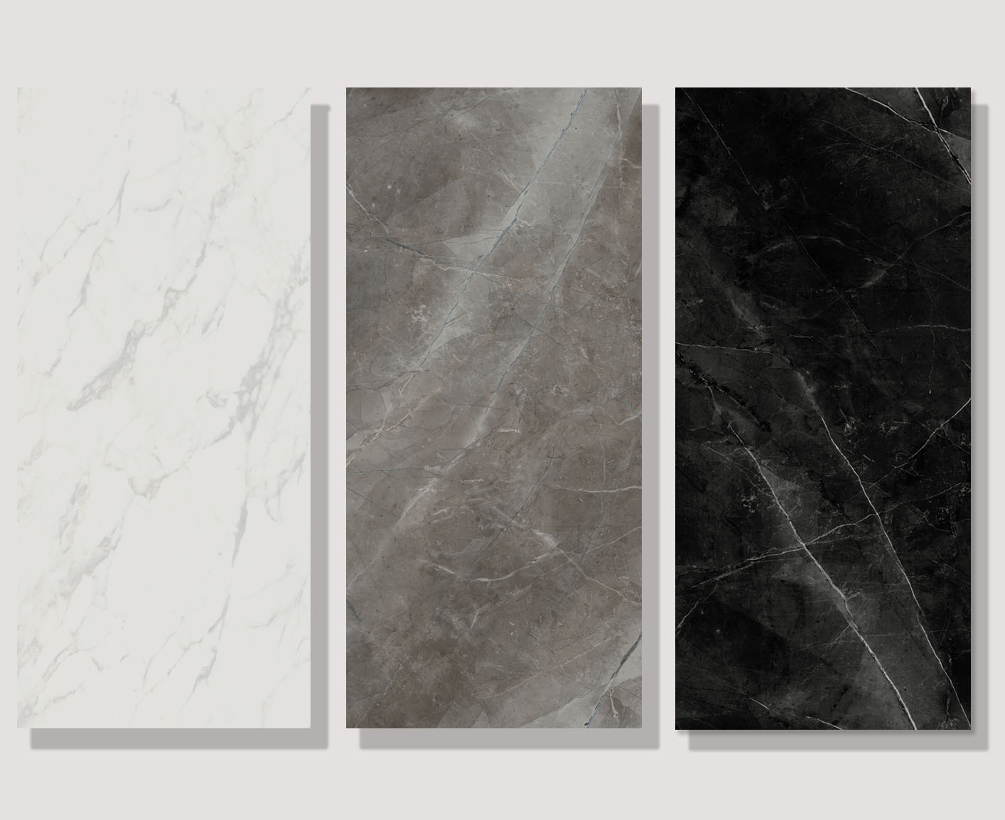 El protagonista del primer bloque dedicado a esos materiales que perduran en el tiempo intactos o con la belleza que les otorga el tiempo es el mármol. Presente en la naturaleza en diversos colores intensos o neutros nos fijamos en estos últimos. Hagamos un recorrido tomando el tono blanco con veta gris clara para crear atmósferas sosegadas y amables, el tono gris para evocar interiores lujosos y exclusivos hasta terminar en el mármol negro que genera un black &White look.