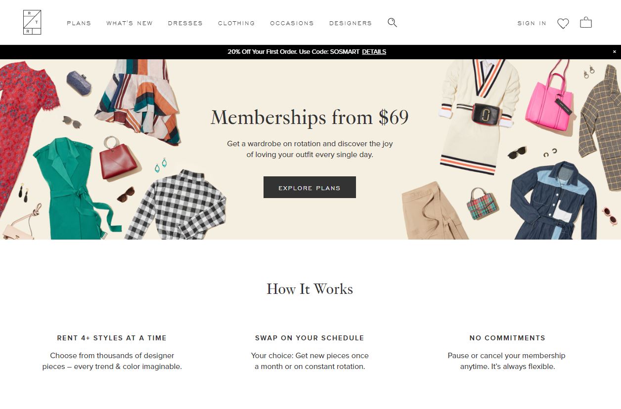 En 2009 nació Rent the Runway, la compañía de alquiler de ropa líder en el mercado. En origen estaba vinculada a la moda de lujo y los eventos, haciendo posible el alquiler de vestidos de famosos diseñadores para una ocasión especial. Pero con el tiempo y la aparición de otras compañías el concepto ha ido evolucionando, pasando de los alquileres puntuales a suscripciones mensuales que dan derecho a pedir y recibir en casa un número limitado o ilimitado de prendas, en función de la cantidad invertida. Las compañías también ampliaron su armario incorporando prendas orientadas al día a día.