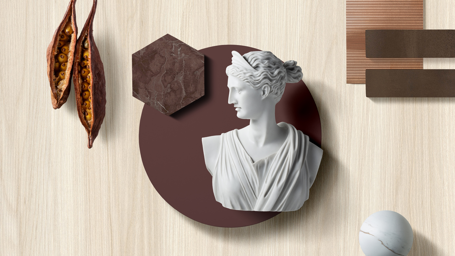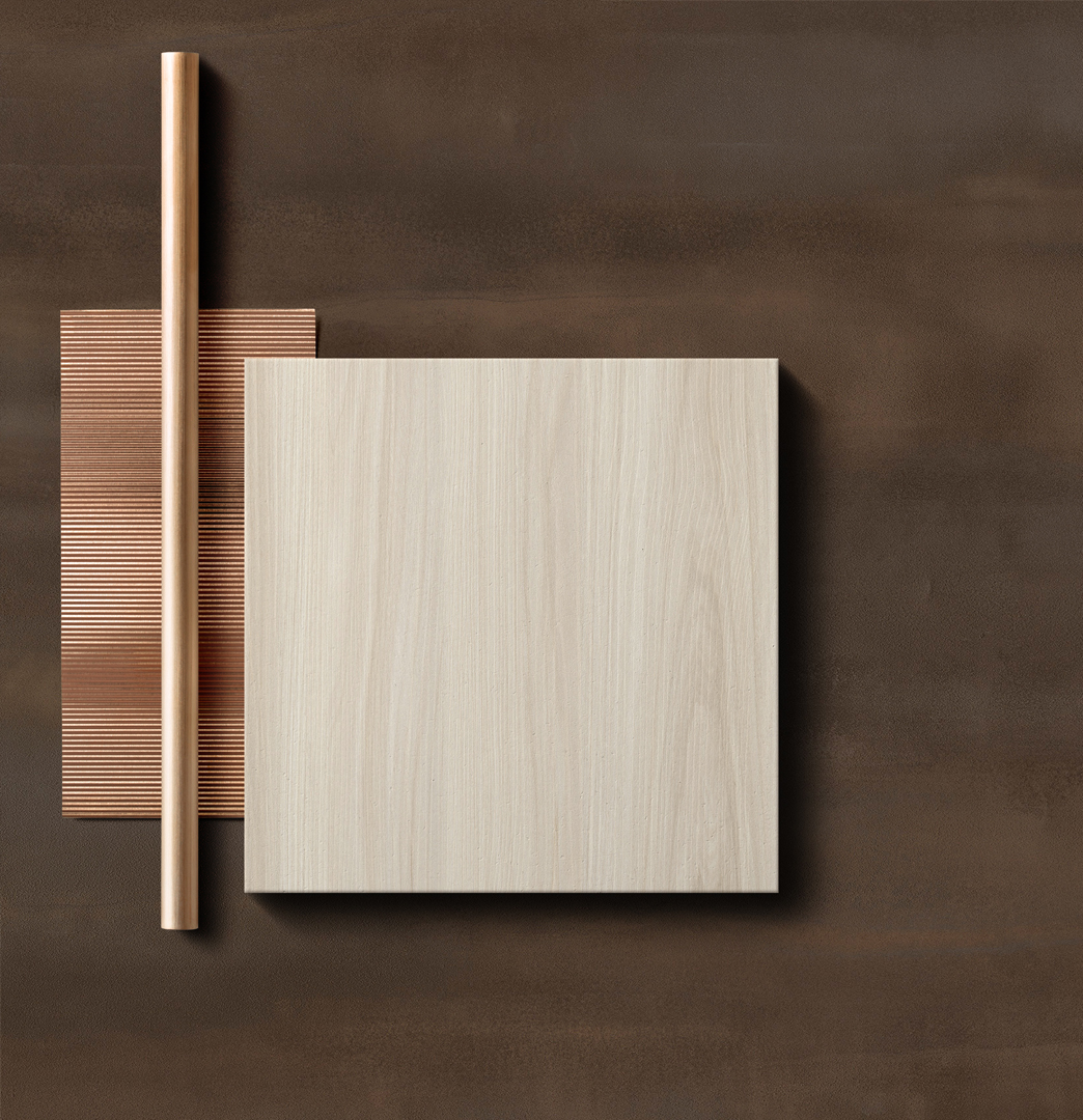 Ambientes contemporáneos con un toque distintivo. Una expresión moderna que resalta la belleza de las texturas y la combinación de materiales, poniendo en valor las singularidades de las superficies. La fusión de los decorativos Sunset Terracota-Technical Matt, Mármol Artemisa-Teide, Olmo Grace-Etna y Mars Canyon-Balm crea un equilibrio perfecto entre lo natural y lo sofisticado.