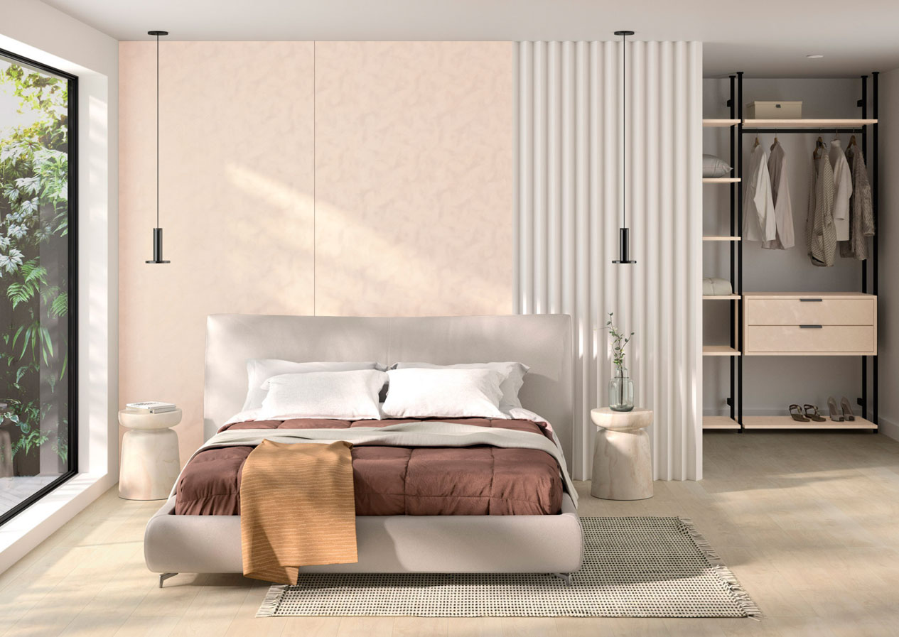 Another case study we love for its brightness is in the paneling and dressing area of this bedroom.