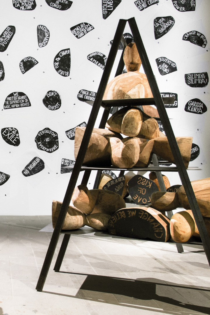 La obra de Barthelemy Toguo está inspirada en sus experiencias de viajar y vivir entre diferentes culturas del mundo. Nacido en Camerún, se formó como artista en Abidjan, Costa de Marfil; Grenoble, Francia; y Düsseldorf, Alemania. El trabajo de Toguo incorpora la condición diaspórica como fundamental para la realidad contemporánea.