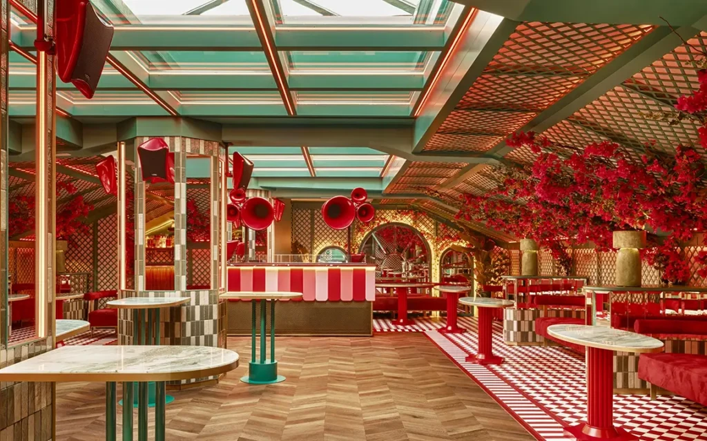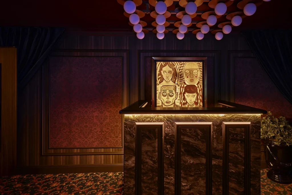 El juego de elementos fuera de escala aporta teatralidad al interior: las enormes manos que sostienen las bolas de discoteca y las lámparas diseñadas a medida “visten el techo de la zona de baile”, mientras que una serie de obras de arte retroiluminadas, desarrolladas ad hoc para el proyecto, dominan los espacios más estratégicos y refuerzan la narrativa visual del club, apuntan desde el estudio de diseño.