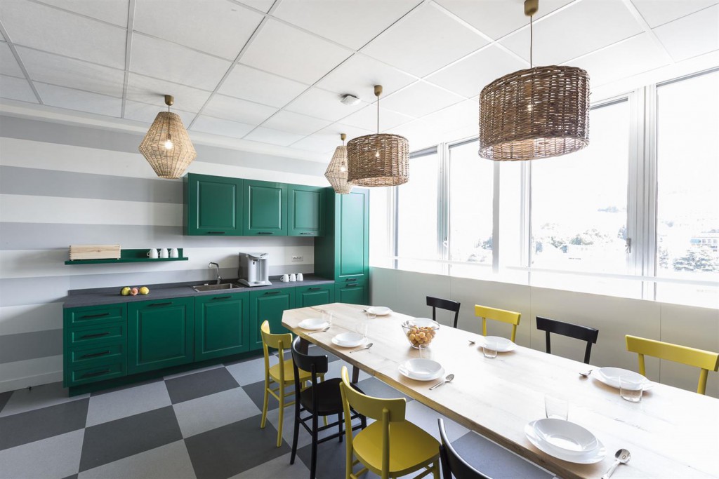 De nouvelles typologies de bureaux qui génèrent un environnement agréable et proche se créent un chemin, où le troisième espace acquiert un rôle important, où de nouvelles zones naissent pour encourager l’interaction et le travail collaboratif, pour stimuler la créativité depuis un environnement plus distendu. Ces espaces ont pour habitude d’inclure des sofas et des éléments ludiques, comme le baby-foot, un classique dans ces espaces que le cabinet d’architecture Tétris, spécialiste en design et construction de bureaux, intègre au sein des bureaux génois de Booking.com, dans un bureau qui rappelle la cuisine de nos mères. Quelques projets sont plus rupturistes, comme les bureaux de Scaleway, remplis d’espaces atypiques, originaux et inspirateurs.