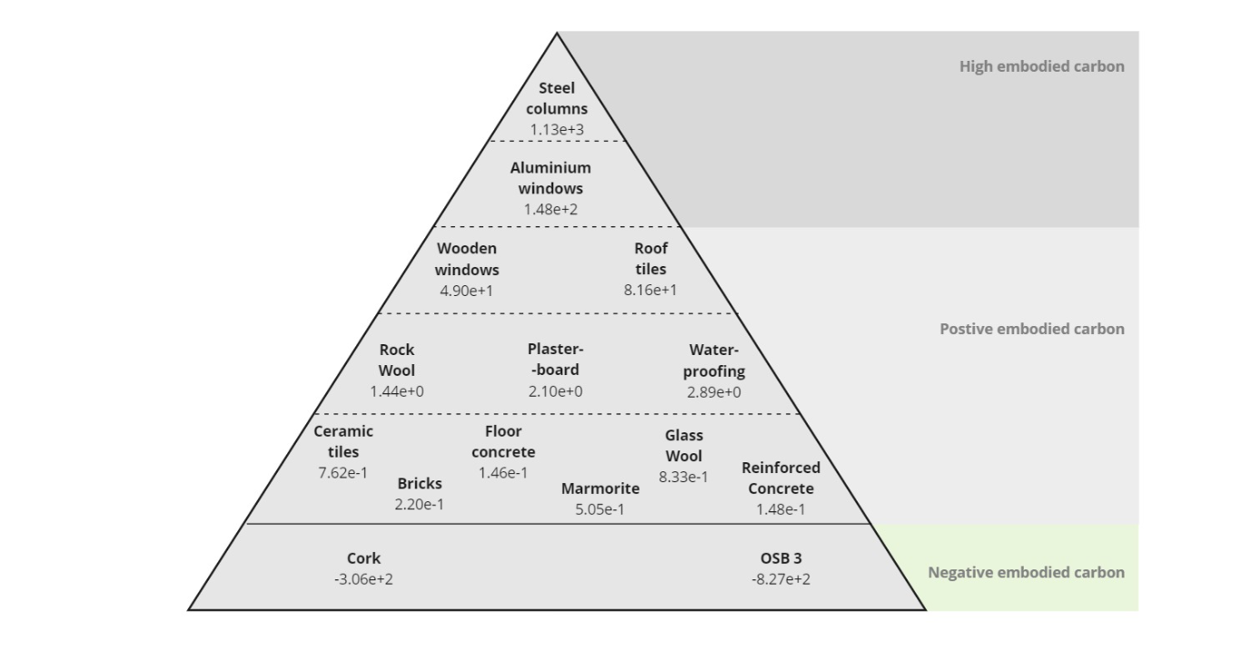 Les clés du projet Casa Cedo résident dans la rénovation et la conservation. C’est un ancien bâtiment de 3 étages situé dans la Rúa Cedofeita – l’année exacte de construction n’est pas connue, bien qu’elle soit estimée antérieure à 1813 -, étroite et longue, typique de Porto, qui était une usine textile et plus tard un atelier électrique. Ce sera bientôt un hôtel de 9 chambres, avec une boutique au rez-de-chaussée et un atelier d’art et de cuisine dans le jardin arrière. Pour cette rénovation, Dosta Tec a analysé et calculé le carbone embarqué dans les matériaux utilisés : le niveau élevé d’acier et d’aluminium, le positif dans le cas des tuiles, des briques, de la laine de roche ou de verre et du béton, et le négatif dans le liège et les planches en bois OSB 3.