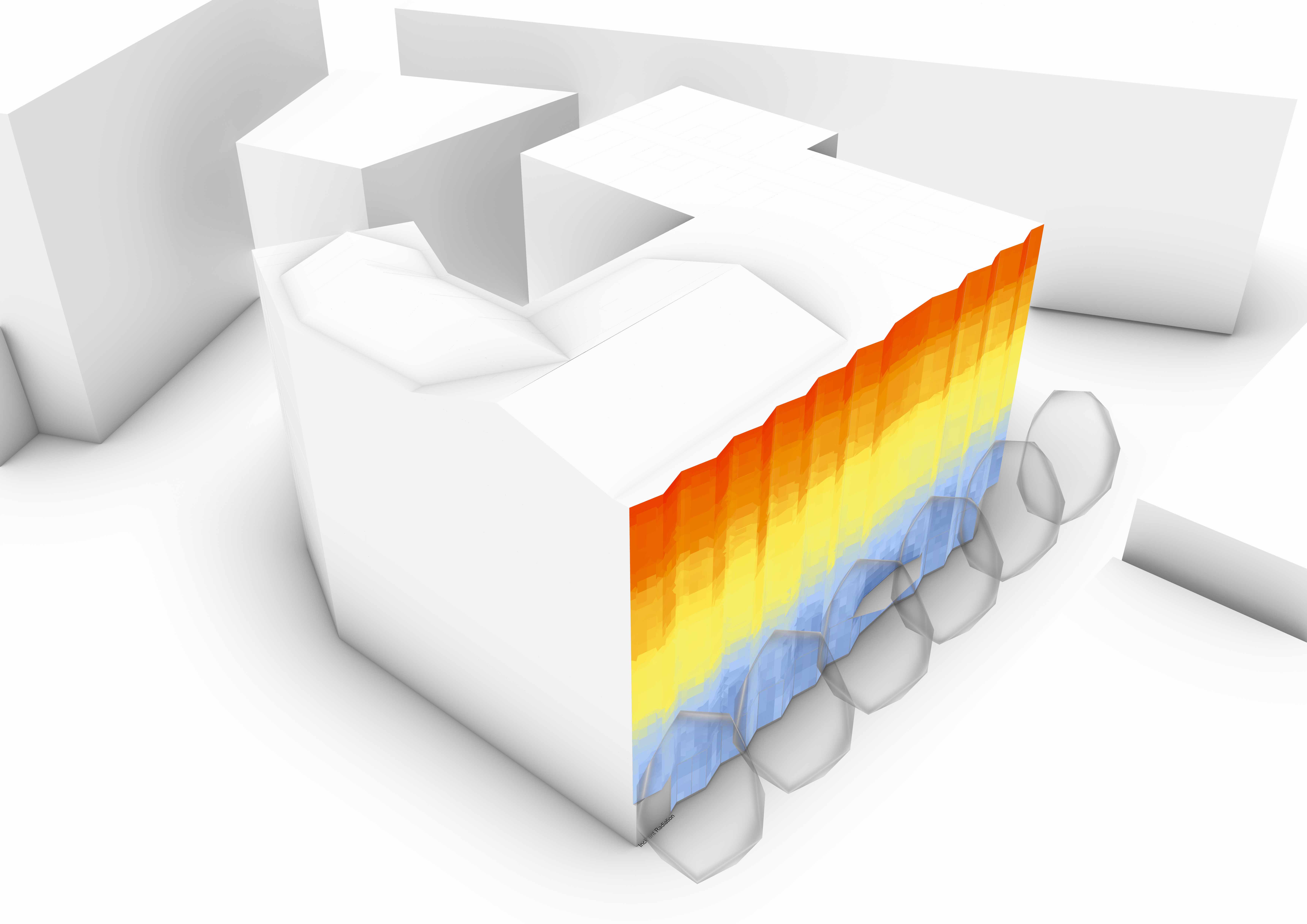 Il s’agit d’une autre étude, dans ce cas sur le rayonnement solaire, réalisée par le studio portugais, pour vérifier comment la présence d’arbres affecte la façade d’un hôtel dans la ville polonaise de Cracovie. Les avantages sont multiples : de la régulation de la température et de la protection contre le bruit à l’isolation thermique.