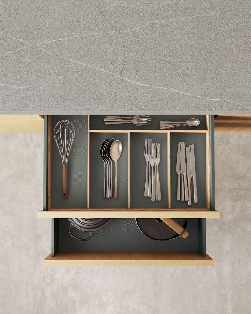 Hay vida y mucho diseño más allá de los frentes de cocina. El interior de los muebles cobra cada vez más protagonismo, tanto desde el punto de vista puramente organizativo como estético.