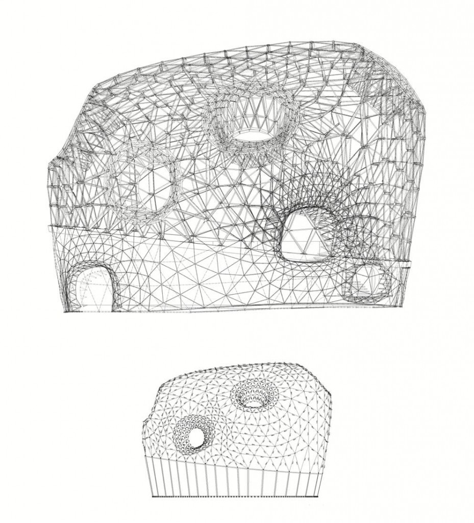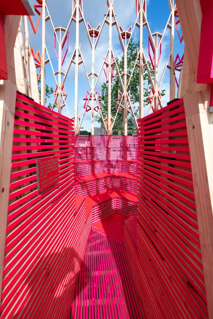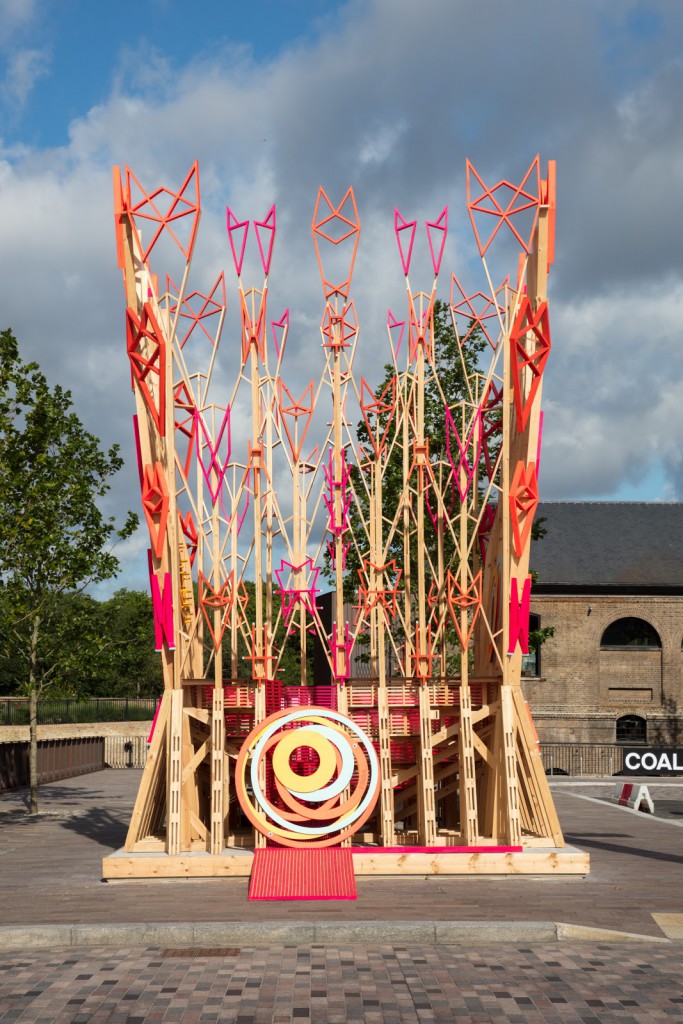 Cristina Díaz Moreno: Hemos construido una pieza con unos materiales muy baratos y con un sistema muy sencillo, pero por otra parte con una geometría que busca convertirse en un elemento que atrae visualmente. Y está funcionando increíblemente bien, todo el mundo se acerca a verlo, a hacerle fotos y quiere entrar. Para nosotros es un placer como arquitectos intentar que funcionara de una manera y que lo esté haciendo.