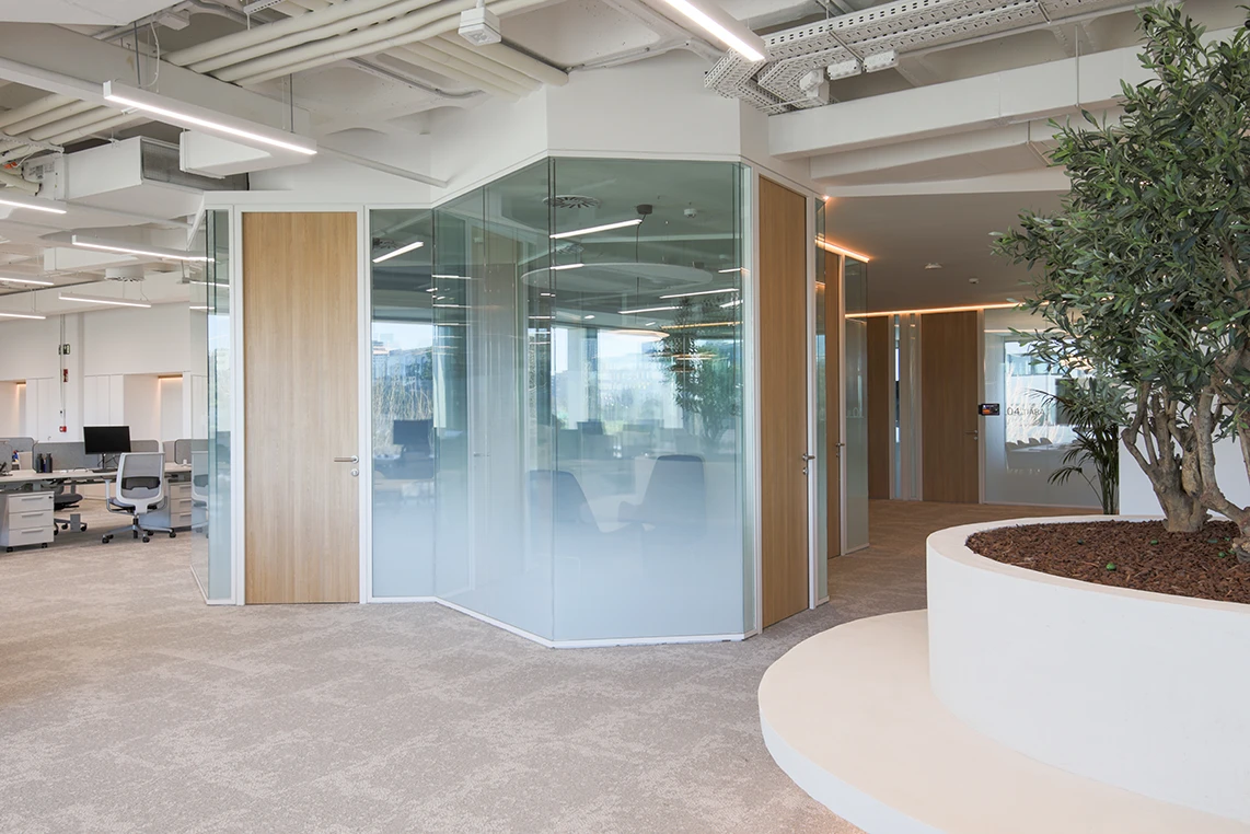 Headquarters of Metrovacesa. Application of Roble Hera Sega doors and Gravity Hueso Soft on tables (Madrid, 2023).