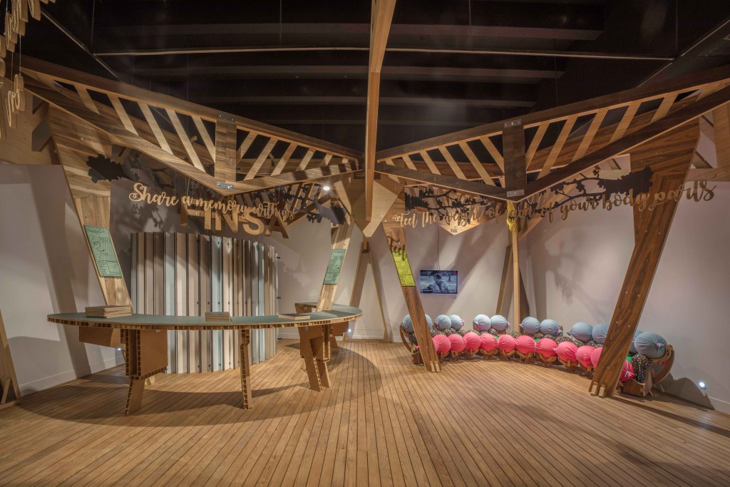 A pleasant day in nature in a green space that beckons us to lie down. Here, you can find shelter from weather conditions that might ruin the sensations you experience. In this part of exhibition, there is a spot for you to lie down peacefully and remember that physical, primal contact with nature.