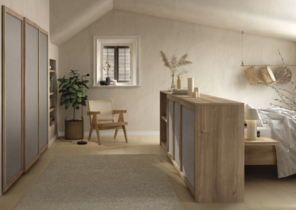 Il est également possible de créer un coin cosy avec une présence organique, conçu pour se détendre avec un bon livre ou pour pratiquer le yoga à la maison. Dans cette proposition, les fibres naturelles et les matériaux dans lesquels les imperfections se démarquent, comme le bois, contribuent à créer l’atmosphère parfaite.