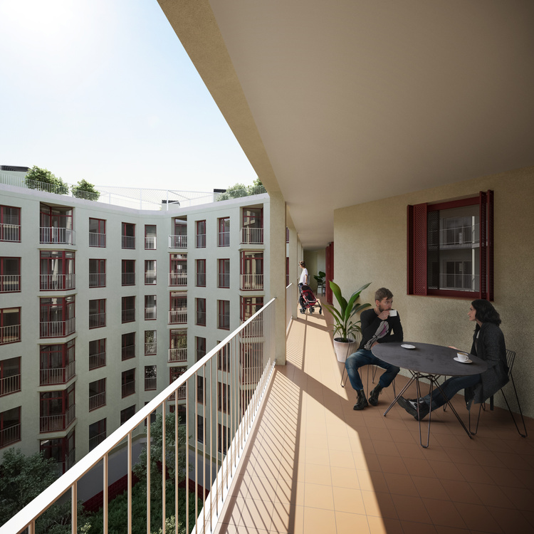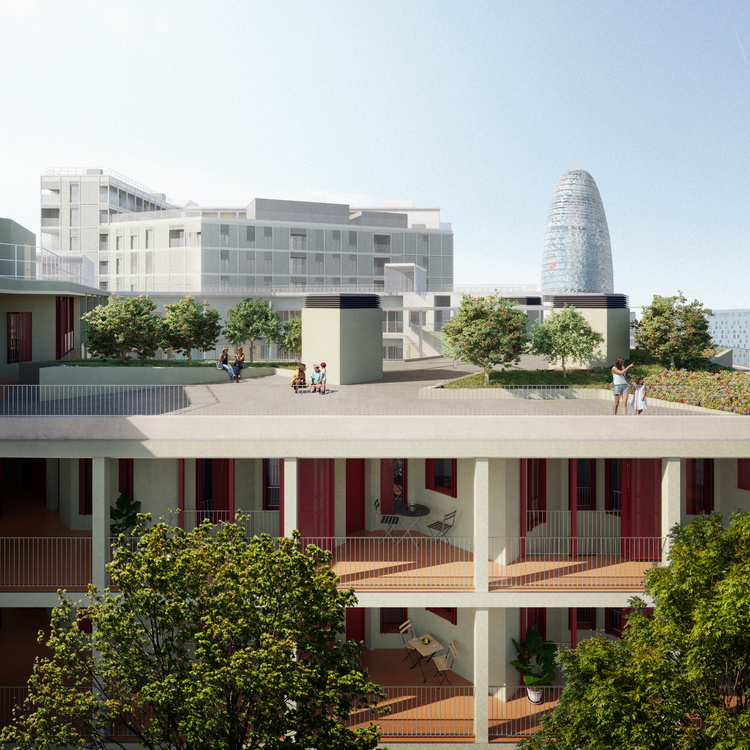 Cierto Estudio ganó el concurso para la redacción y el proyecto de 51 viviendas sociales en la Plaça de les Glòries en Barcelona. Subrayaron la importancia de la planta baja y la cubierta del edificio de la siguiente forma: propusieron que los accesos se realizaran a través de las calles y de un pasaje, mediante unos vestíbulos. Estos vestíbulos, a su vez, conectan con patios comunitarios, desde los que se puede entrar en los núcleos verticales donde se ubican las viviendas. La azotea y cubiertas se planificaron para usos comunitarios (lavanderías o, simplemente, espacios en los que estar disfrutando del clima mediterráneo al aire libre).