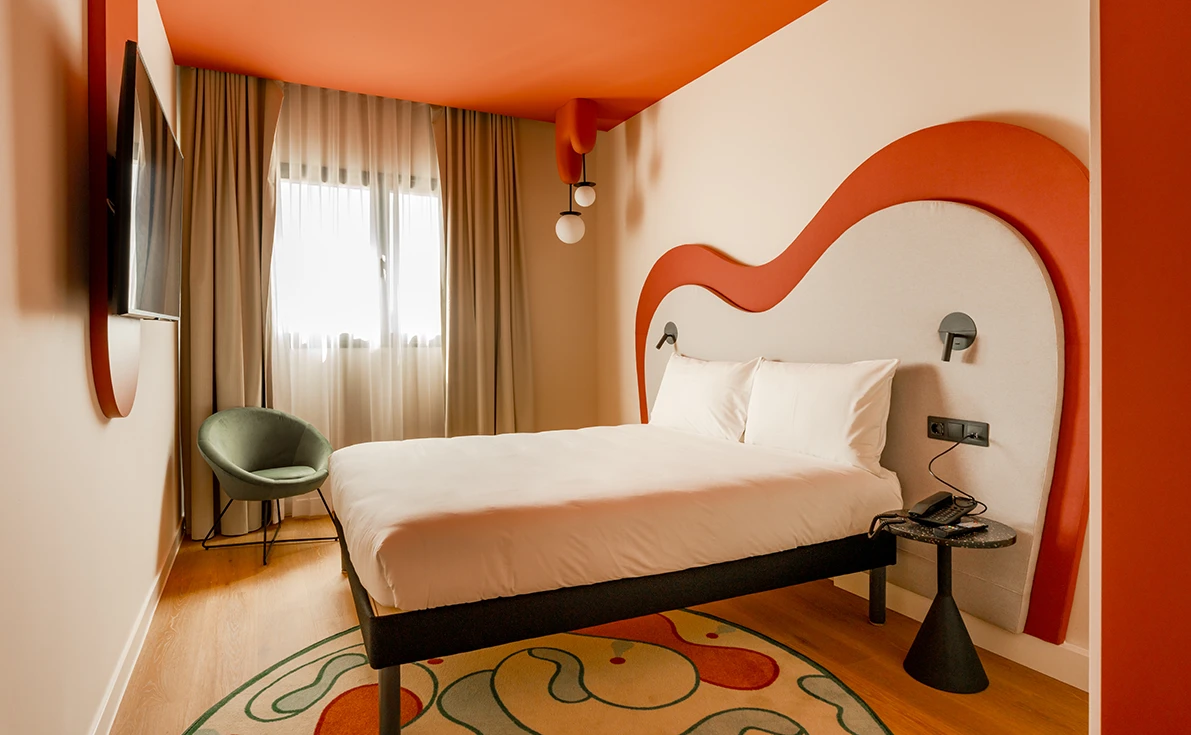 La clé réside dans la façon dont les couleurs ont été équilibrées : les neutres enveloppent et les accents agissent comme des signaux émotionnels pour l’invité. L’étude préalable a mis en évidence trois qualités de matérialité essentielles au développement de l’hôtel : la polyvalence du design, la durabilité et la facilité de nettoyage, cruciale dans les moments de fort trafic. « Nous devions intégrer 260 chambres dans un budget serré, sans sacrifier le caractère », explique Alba Hernández González.