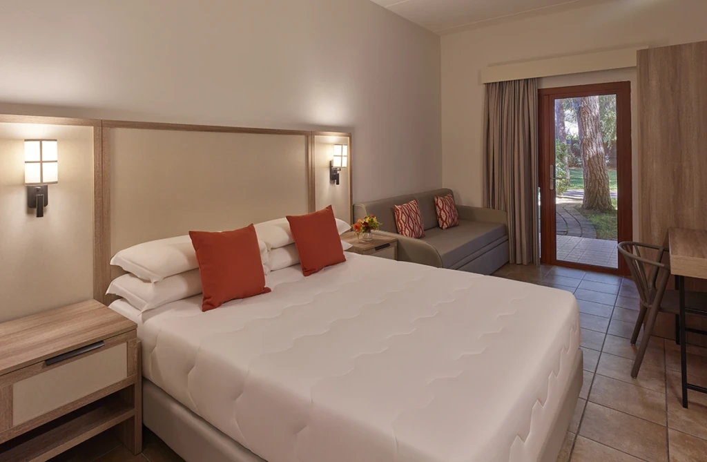 Furtivo aborde la rénovation d’un resort aux typologies multiples comme s’il s’agissait d’un système : une famille de pièces modulaires — têtes de lit, consoles, armoires — qui parcourent les pièces en générant une unité narrative.