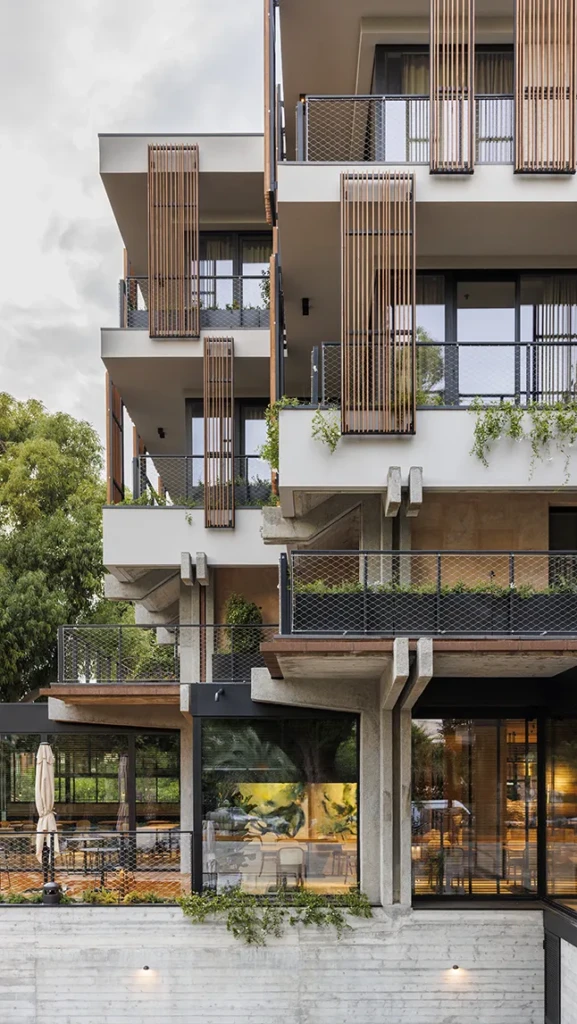 Ici, l’histoire est un dialogue avec le brutalisme originel des années 70. L’intervention s’appuie sur la structure en béton avec une chaleur tactile qui humanise l’échelle, notamment dans les terrasses et les lames de contrôle solaire.