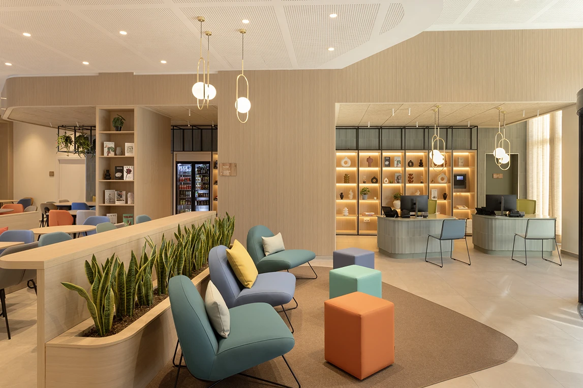 - CMF avec un but. Color. Material. Finish. La palette n’est pas cosmétique : elle ordonne les usages, les rythmes et les flux (Ibis comme un manuel de couleurs, Capitolo comme une gradation entre béton et bois, Staybridge comme un bleu calme pour le long séjour).
