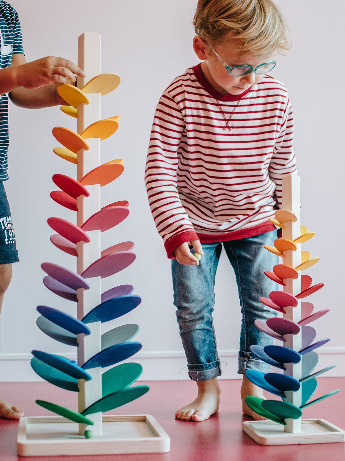 - L’arc-en-ciel. Toujours dans le top des ventes des jouets liés aux nouvelles pédagogies éducatives. C’est un jouet sympa, à la mode et l’un des plus complets du marché. Basé sur le système Waldorf, il permet à l’enfant de développer son imagination tout en l’accompagnant au cours de sa croissance.