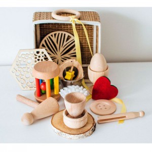 - Le panier aux trésors. Ce bric-à-brac, conçu pour que l’enfant découvre et utilise ses sens, contient des éléments en bois qui imitent des objets de la vie quotidienne, comme des aliments. D’autres éléments sont en métal, en papier, ou en carton. Le principe est simple : ne pas manquer de jouets pour s’amuser.