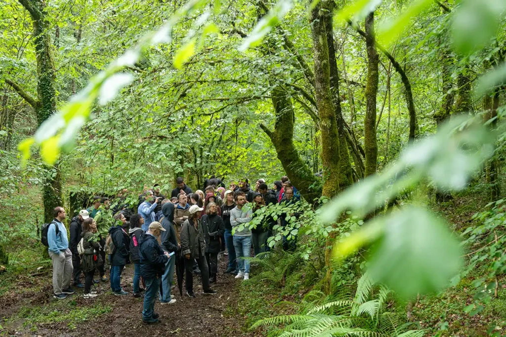 Además, entre las personas asistentes hubo también propietarios forestales y comunidades de montes, profesionales del sector forestal, de la arquitectura y el diseño o la gestión cultural. La comunidad académica y local también estuvo presente, junto con participantes de ediciones anteriores y vecindario de aldeas próximas, reflejando así el carácter diverso y abierto del evento. De toda esta representación, más de la mitad visitaba la finca por primera vez, lo que supuso una buena oportunidad para establecer nuevas conexiones y miradas renovadas.
