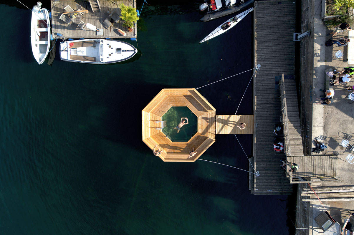 Près du centre de Copenhague, Fisketorvet disposera d’une zone de sauna et de baignade modulaire qui pourra également être transportée facilement vers différents emplacements de manière totalement sûre.