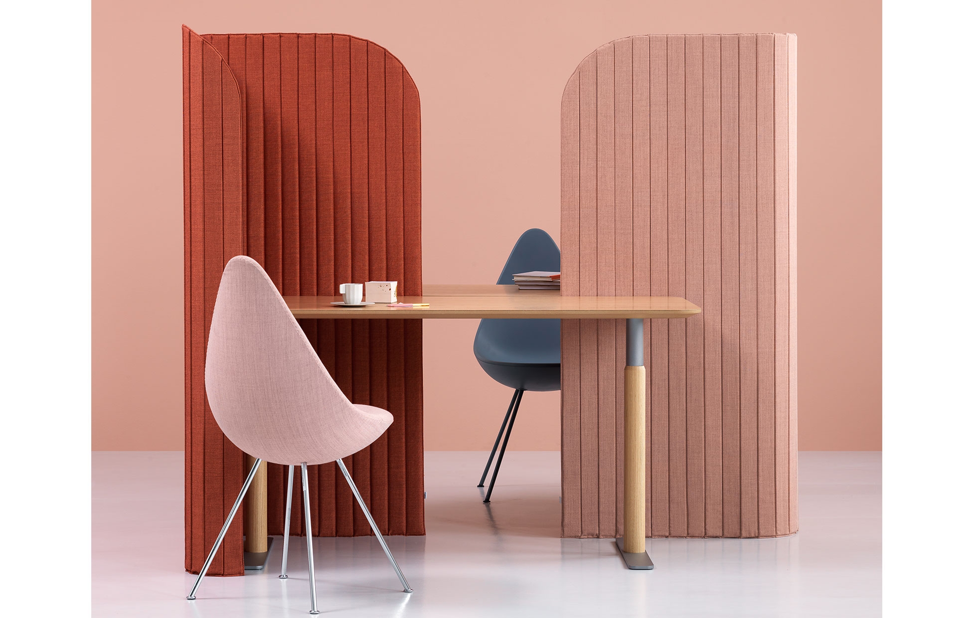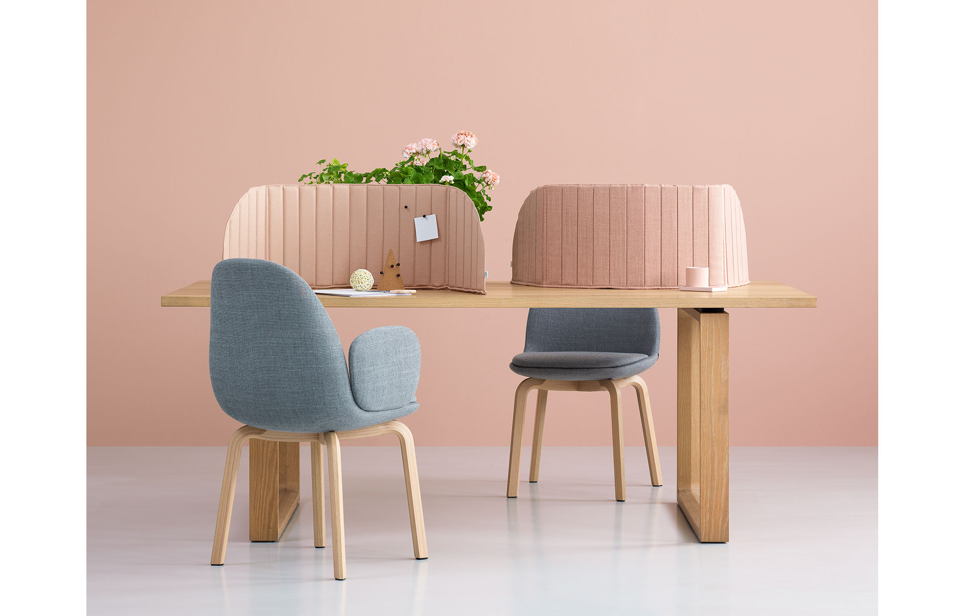 Le design des meubles n’est pas étranger à ces nouvelles exigences liées à l’acoustique et nous trouvons des sociétés comme la suédoise Glimakra qui proposent différentes solutions de mobilier de bureau absorbant les sons, fabriqués en combinant bois et textiles.