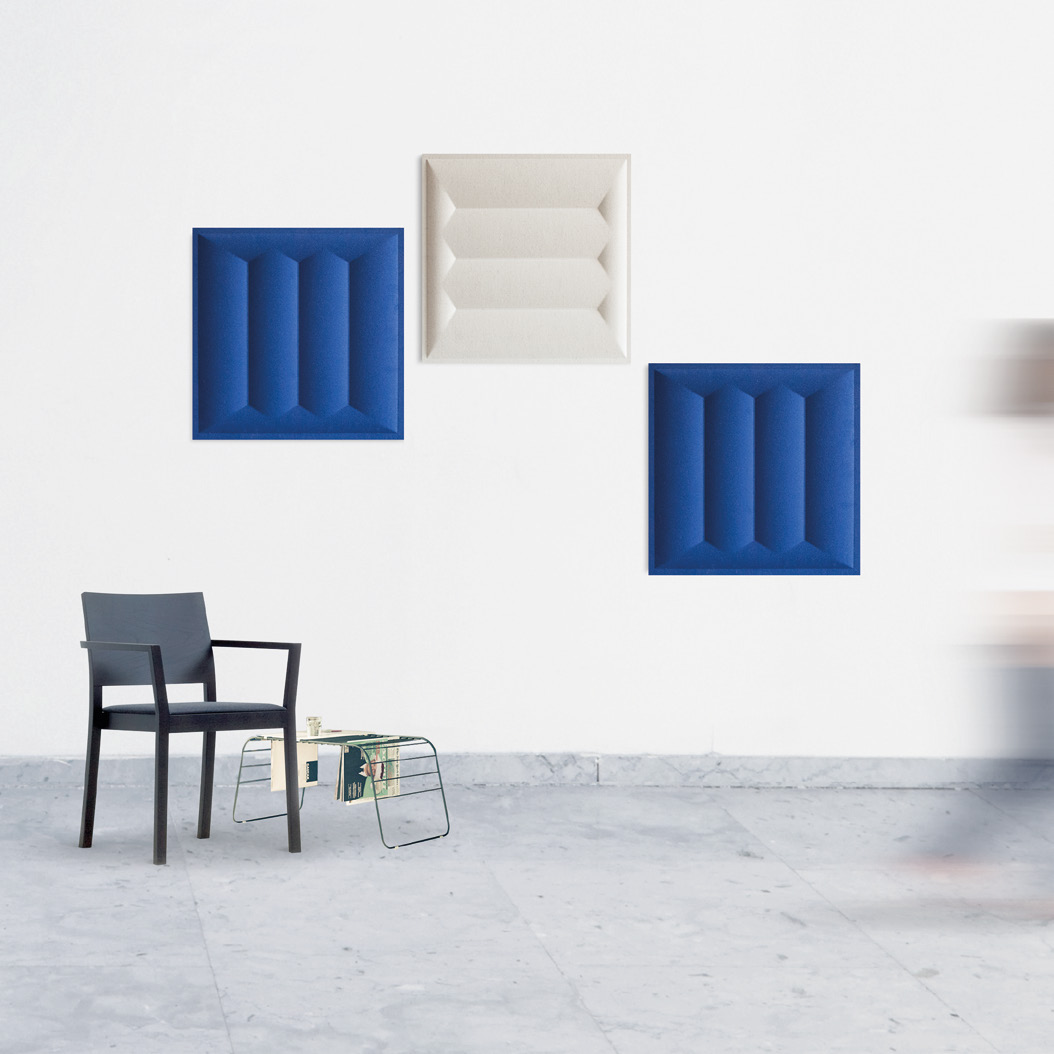 À plus grande échelle, différents panneaux muraux offrent des solutions qui, outre l’amélioration de l’acoustique, présentent des conceptions très contemporaines et même la possibilité de les personnaliser. Vous pouvez choisir un mur complet avec le système modulaire Elements de Kvadrat ou avec des éléments tels que Woopies de Vyva Fabrics, des panneaux fabriqués à 100 % en laine suisse qui, en plus de réduire le bruit, neutralisent les odeurs et réduisent la pollution de l’environnement.