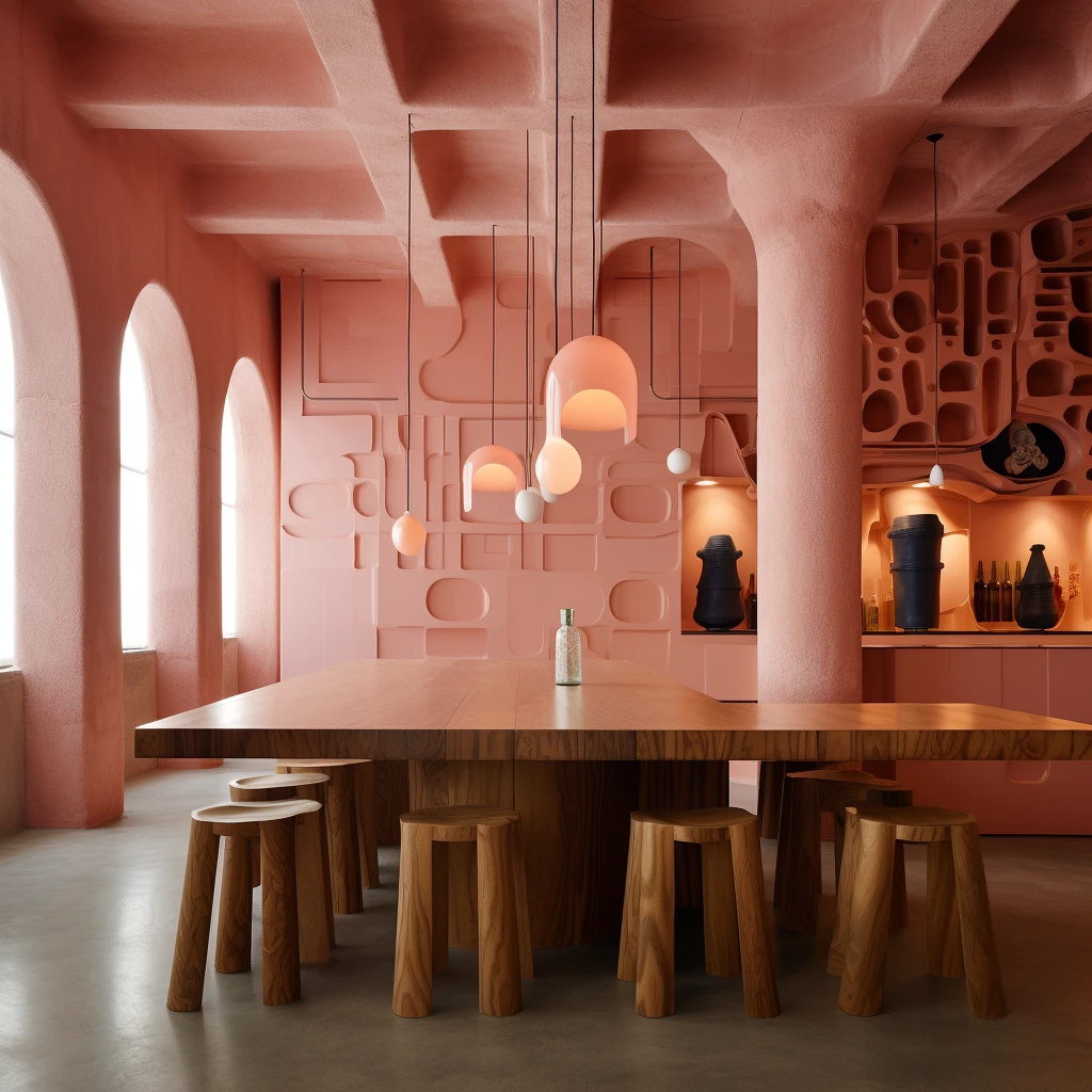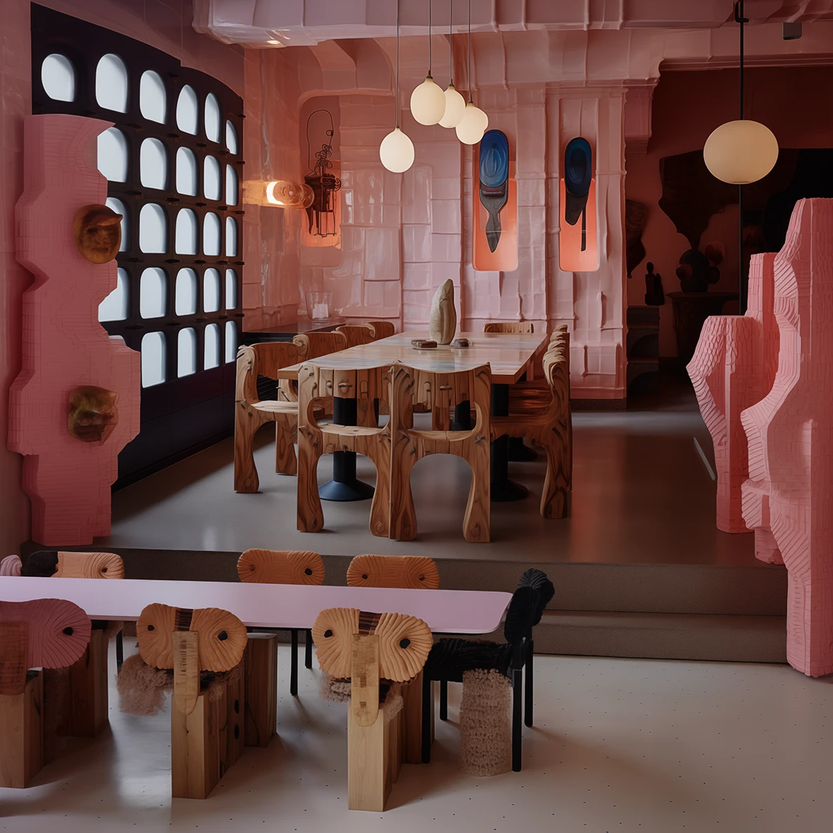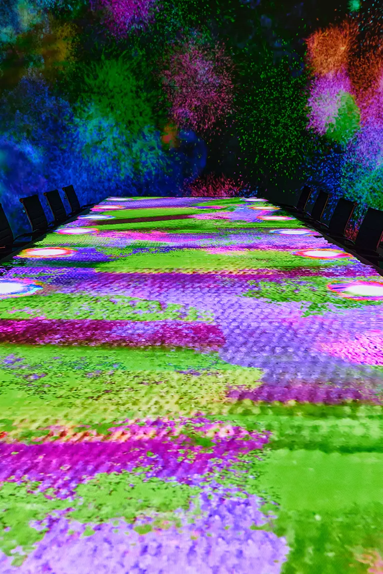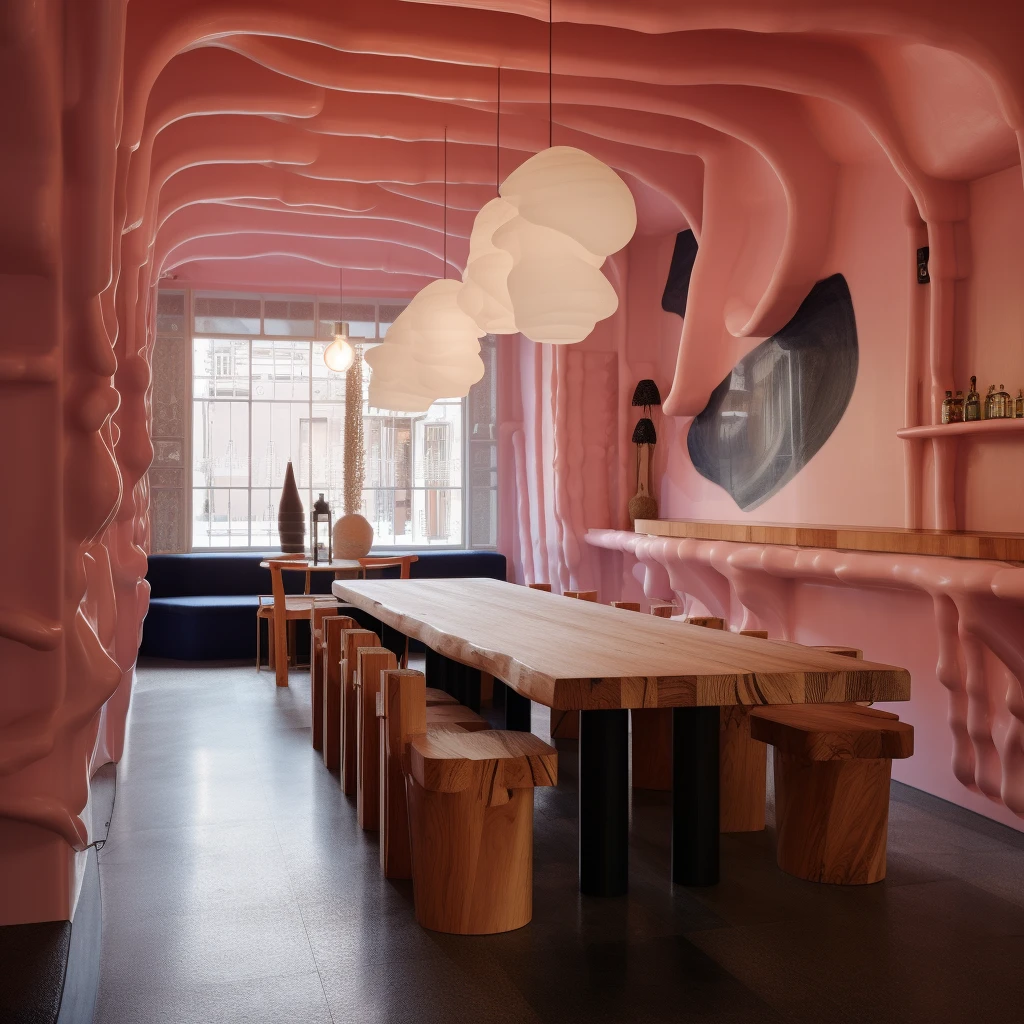 Este restaurante genera una experiencia exclusiva en sus clientes, haciéndoles vivir una performance gastronómica con distintas proyecciones audiovisuales, efectos sonoros y atrezzo que acompañan cada plato. Para este objetivo, los colores se volvieron principales aliados en la transmisión de las sensaciones de cada propuesta culinaria.
