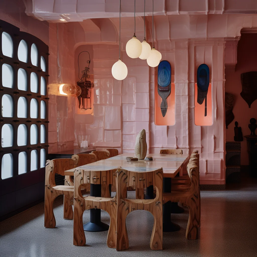 Patricia Bustos ha creado su arquetipo de restaurante en Arquetopia, “la esencia misma de la naturaleza y el arte”, en sus propias palabras. Inspirado en la geometría sagrada, el organicismo y la bioconstrucción, se apoya en materiales como morteros hechos a partir de fibras naturales y tierra, piedra, cal y madera tallada.
