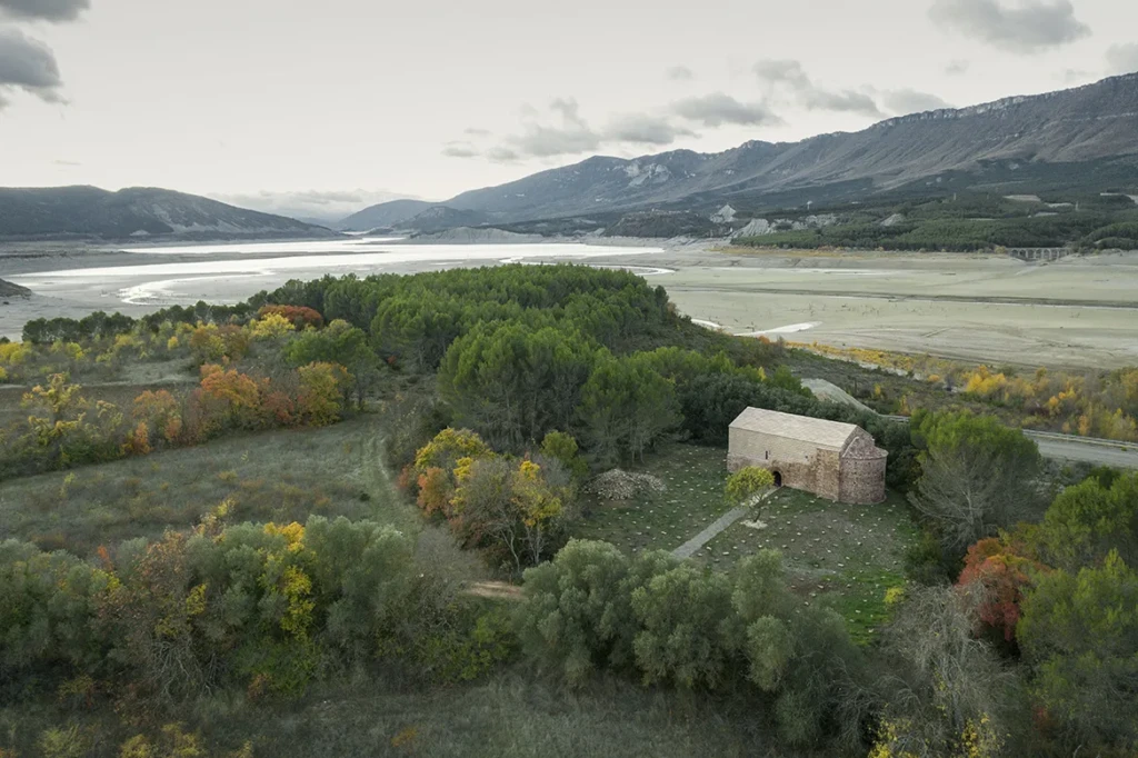 Una ermita románica del siglo XII que quedó en ruinas tras un derrumbamiento parcial en 2001. ¿Cómo recuperarla estableciendo un diálogo entre materia, memoria y territorio? Desde Sebastián Arquitectos moldearon la silueta de la ermita con mampuestos de arenisca local, evocando los sistemas constructivos tradicionales y reduciendo la dependencia de recursos externos. En el exterior, las piedras del derrumbe se utilizan en una obra de landart para recordar esos veinte años de olvido.