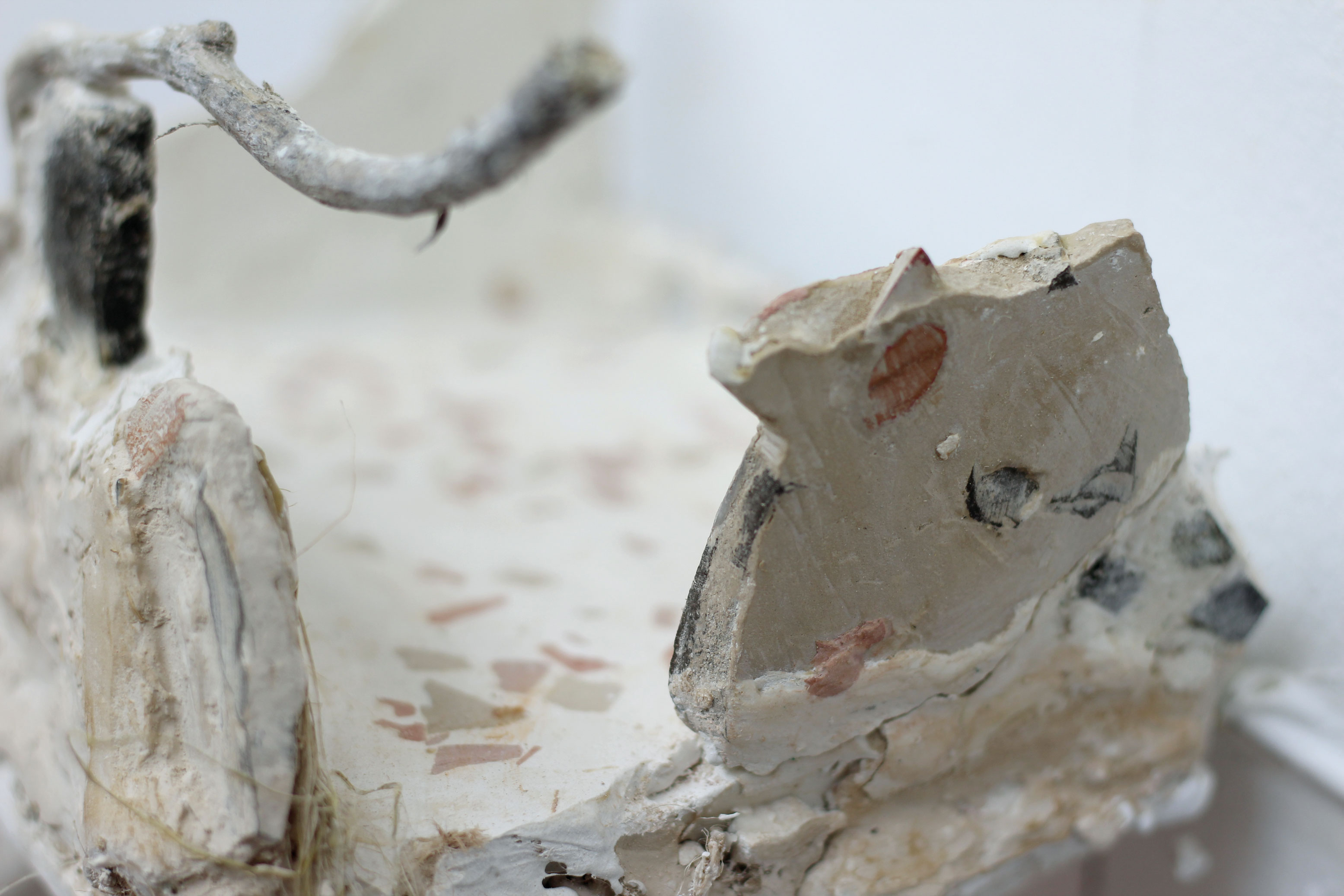 Cette sculpture mélange des matériaux utilisés dans la construction tels que le bois et des céramiques de type terrazzo incrustés dans du plâtre (éléments souvent cachés derrière un mur ou une façade et qui font remonter des souvenirs à la surface) avec des lumières led (la lumière éclaire ces expériences). Casa en el árbol est un voyage direct vers l’enfance : « C’est complètement expérimental, tout était pour essayer de voir ce qui se passait. Cependant, pour moi, il a plus de valeur émotionnelle et conceptuelle qu’esthétique. Ce travail me ramène à mon enfance, quand mes amis et moi avions l’habitude de faire des maisons dans les arbres et que nous restions assis là pendant des heures à manger des sucreries. Ça me rend nostalgique. Aujourd’hui, mes filles jouent très différemment. La pièce montre le goût d’Egaña pour les finitions imparfaites, l’aspect irrégulier et l’asymétrie. Un reflet de la vie. « C’est paradoxal parce que je suis très tatillon et perfectionniste, mais, en même temps, je n’aime pas la rigidité, ni les postures, ni le mensonge qui se cache souvent derrière ce qui paraît parfait. J’aime le naturel et c’est peut-être pour cela que j’apprécie quand quelque chose peut être vu tel qu’il est », commente l’artiste.