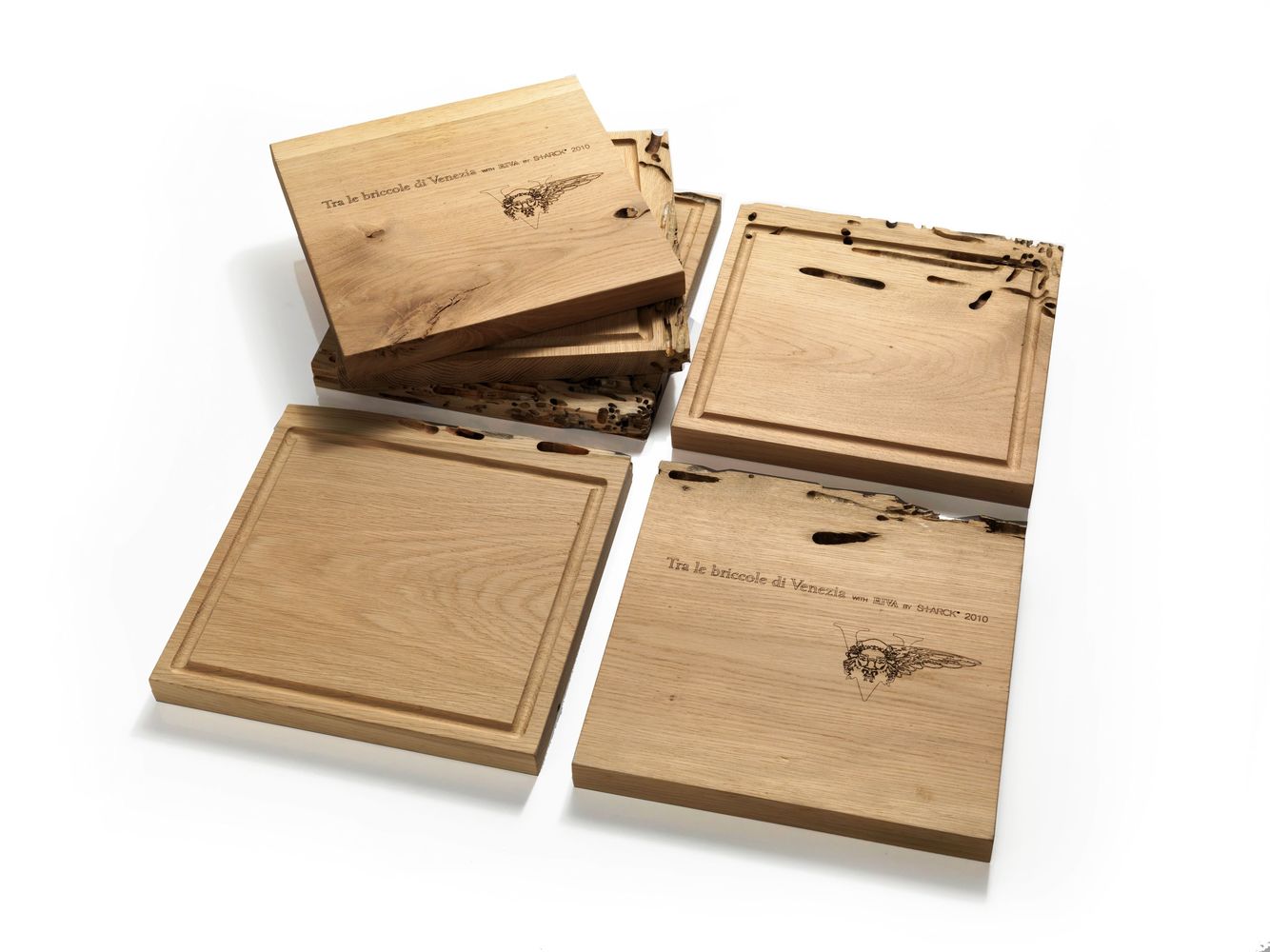 Un autre bois de plus en plus apprécié dans la fabrication de meubles sur-mesure et de caractère est celui réutilisé. Nous vous avons déjà montré sur ce blog une maison revêtue de bois de bancs de mollusques et en Italie, ils ont leur propre version, l’utilisation du bois des poteaux de la lagune de Venise. « Le briccole di Venezia » est un projet du fabricant italien Riva 1920 où il invite des personnalités du design telles que Philip Starck ou Matteo Thun à concevoir une édition limitée de pièces avec ce bois, dans lesquelles on aperçoit les traces d’eau ou de mollusques.
