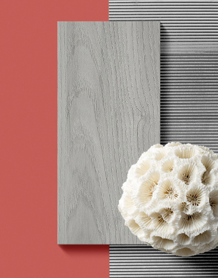 El 474B Trinidad Silver | Bolero encarna la elegancia de la madera en tono gris, con una composición que alterna medias catedrales y zonas malladas. Su veta, acentuada por un poro a registro profundo, establece una conexión visual y táctil entre lo natural y lo contemporáneo.