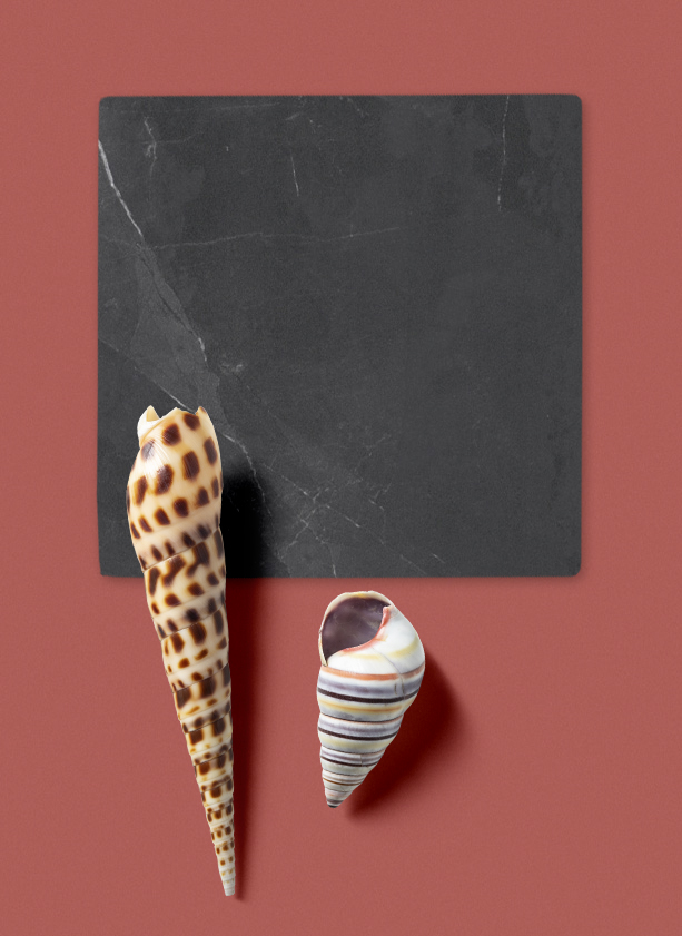 En este moodboard aparecen los decorativos 266B-Champán Metalizado-Moon, 273B-Roble Verso-Atlas, 254B-Rojo Arcilla-Soft III y 2AT-Mármol Hades-Teide.